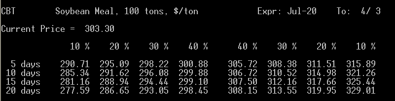 | CBT - Jul-20 Soybean Meal, 100 tons, $/ton Cm.=0.30 Lim.=18.0