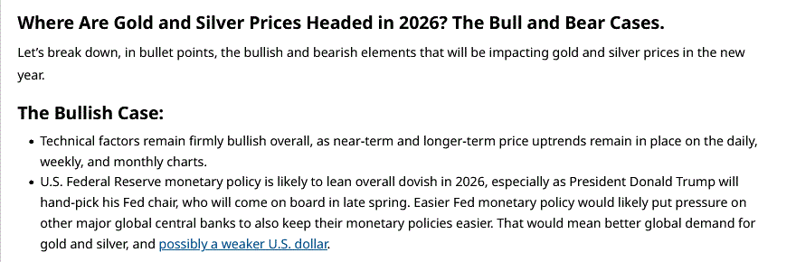 Monetary & Interest-Rate Forces are the Primary Driver for gold prices.