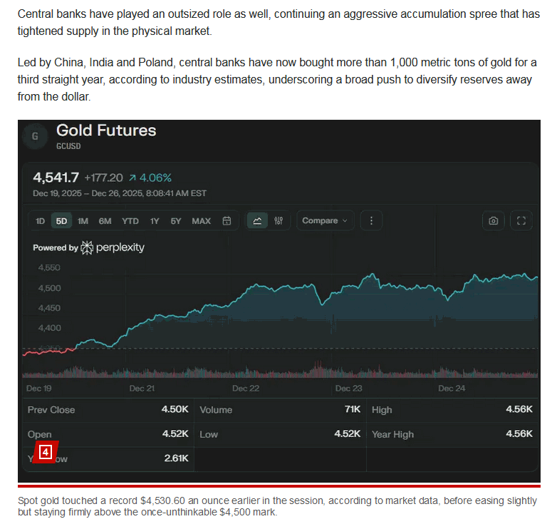 Central banks—especially in China, emerging markets, and non-aligned countries—have been net buyers of gold.