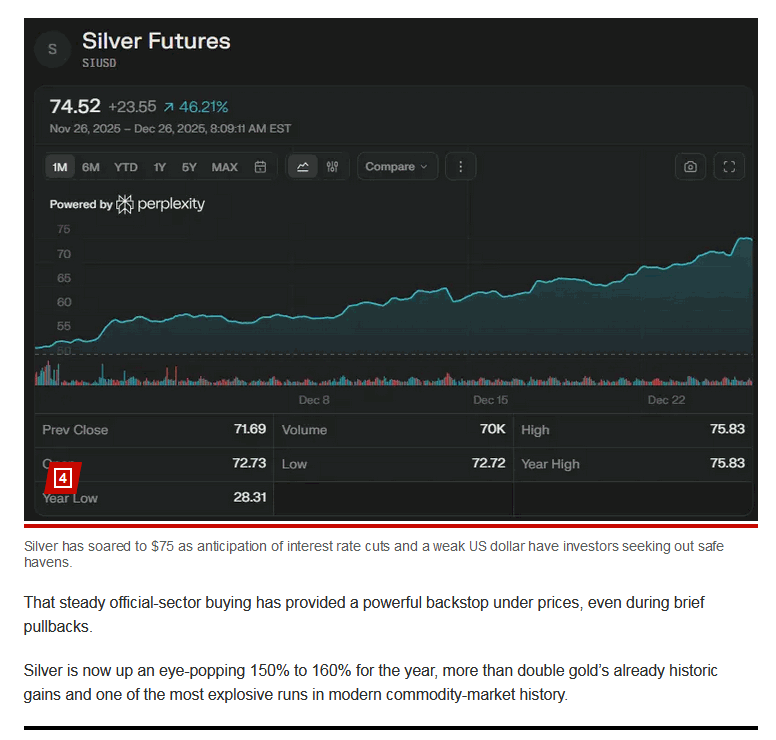 Bullish for gold is mounting pressure on the Federal Reserve to produce falling real rates causing further inflation.