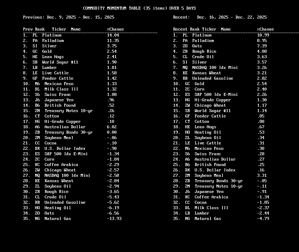 12-22-2025: Commodities Currently to be Reviewed |