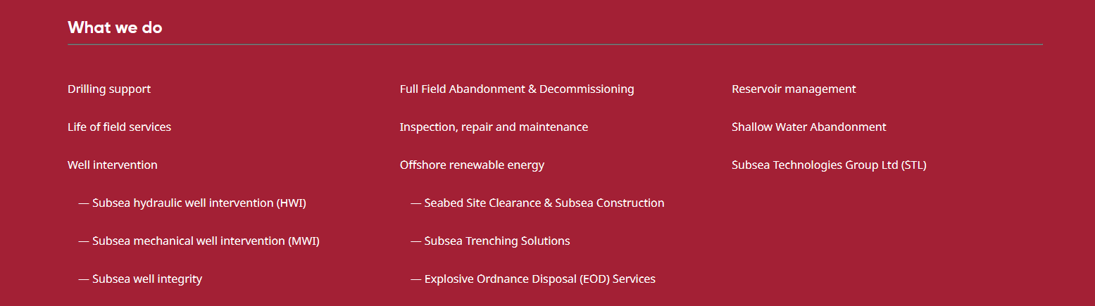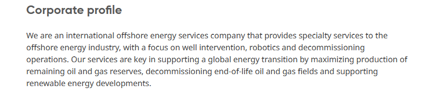 Exposure to the energy-transition theme (renewables / offshore wind infrastructure) through their subsea services & robotics.