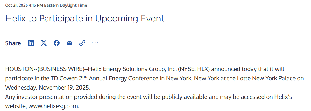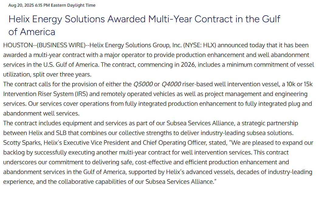 11-05-2025: Helix Energy Solutions Group (HLX): New Gulf of America Contract