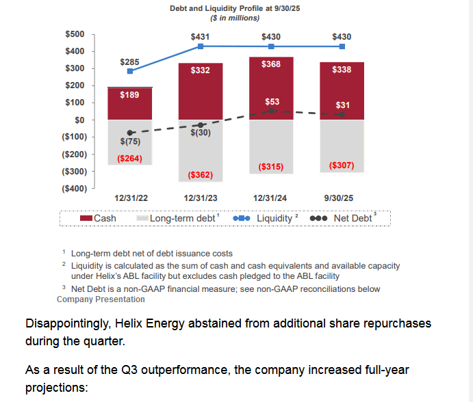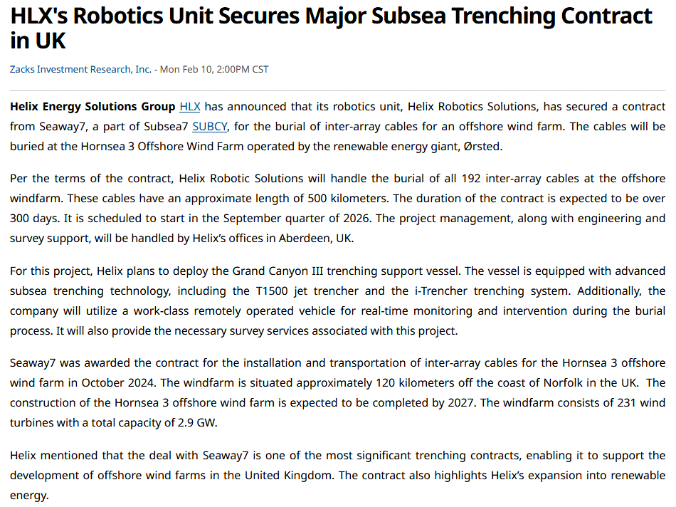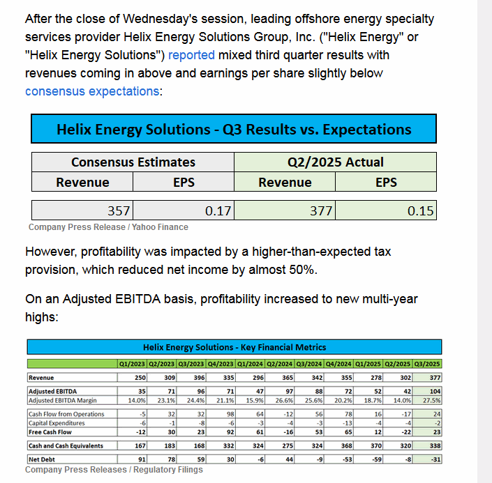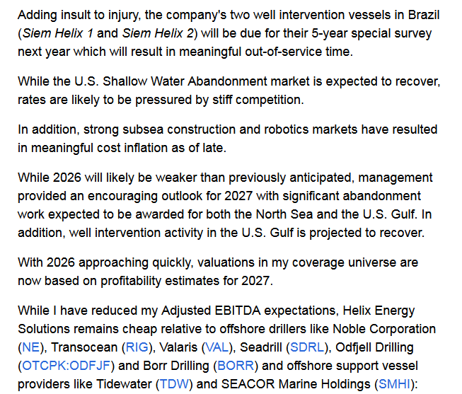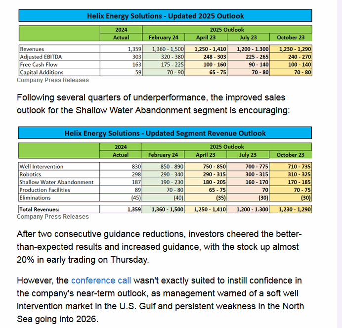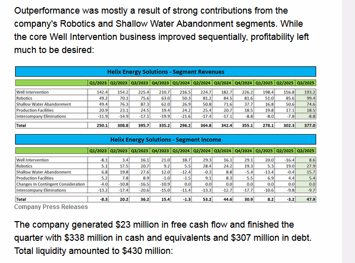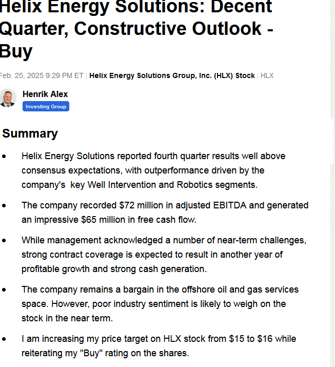 Market sentiment: According to one summary, Helix’s share price has declined and the company is valued quite low relative to peers.