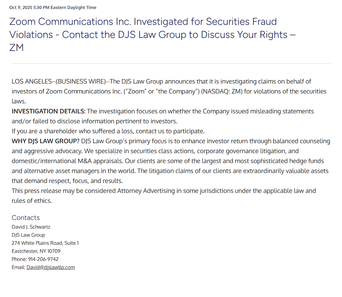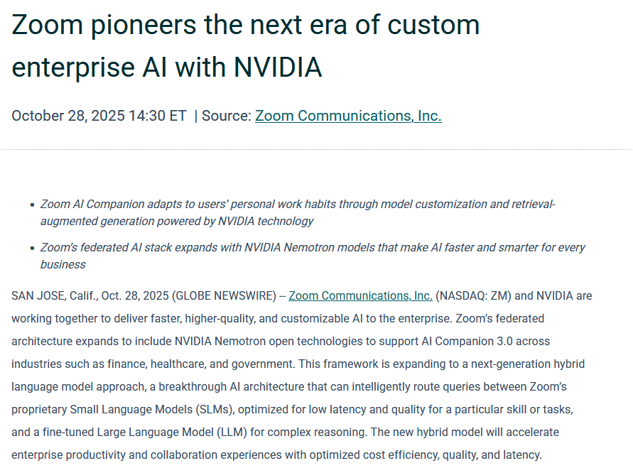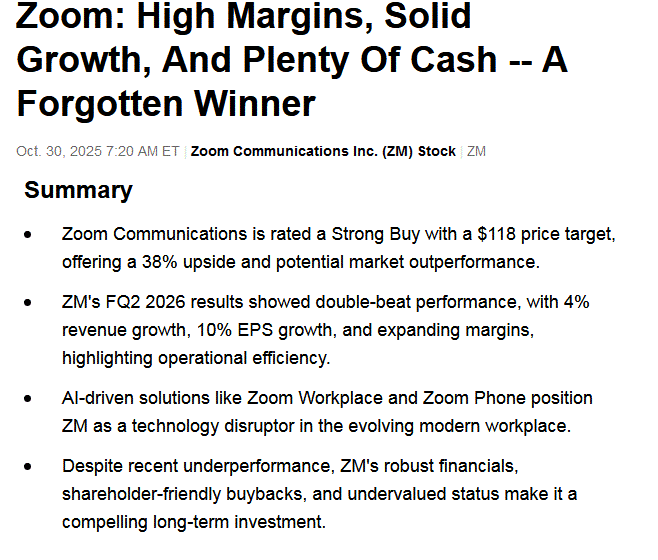 10-31-2025: Zoom Communiccations, Inc. (ZM): Free Meeting Rooms Lead to Upscale Add-Ons